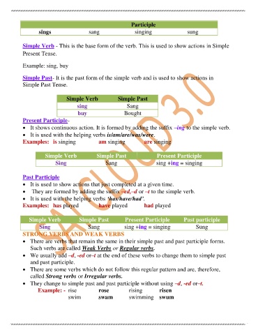 Simple Verb - This is the base form of the verb. This is used to show actions in Simple