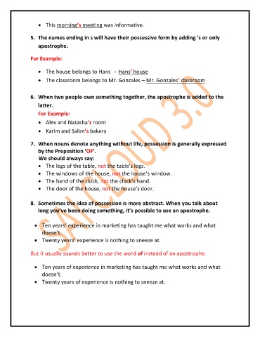5. The names ending in s will have their possessive form by adding ‘s or only