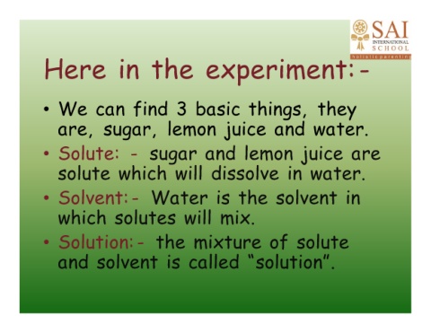 • Solute: - sugar and lemon juice are
