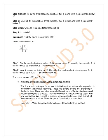 Step1: 2 is the smallest prime number. But it cannot divide 91 exactly. So, consider 3., it