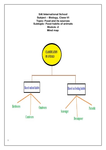 SAI International School Subject – Biology, Class-VI Topic- Food and its sources Subtopic- Food habits of animals Module -2 Mind map 1