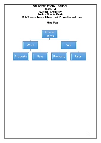 SAI INTERNATIONAL SCHOOL Class - VI Subject - Chemistry Topic – Fibre to Fabric Sub-Topic – Animal Fibres, their Properties and Uses Mind Map Animal Fibres Wool Silk Property Uses Property Uses 1