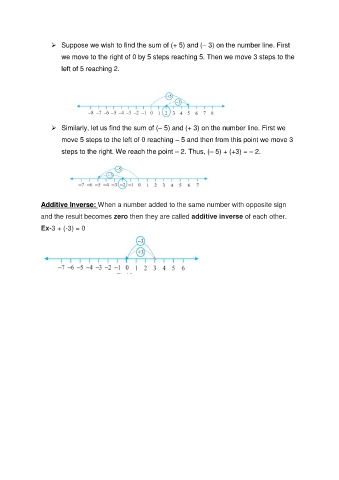 steps to the right. We reach the point – 2. Thus, (– 5) + (+3) = – 2.