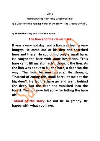 Q.1 Underline the naming words in the story “ The Greedy Gorilla”.