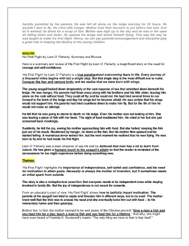 „His First Flight‟ by Liam O‟ Flaherty is a true parableabout overcoming fears in life. Every journey of