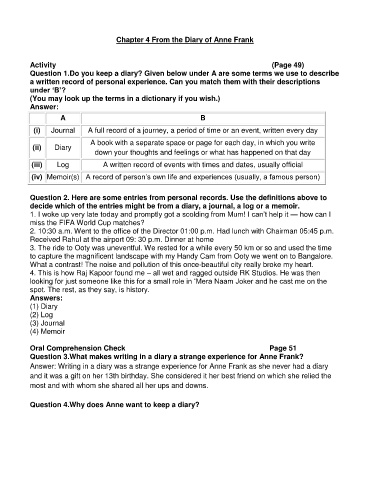 Question 3.What makes writing in a diary a strange experience for Anne Frank?