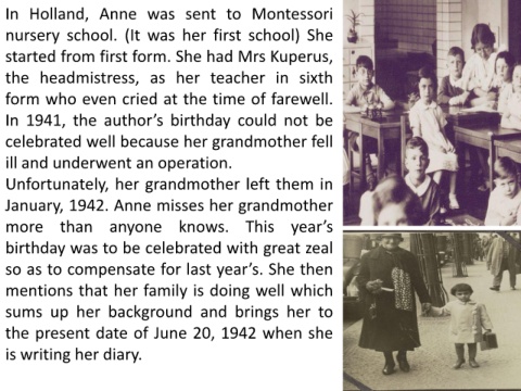 In Holland, Anne was sent to Montessori