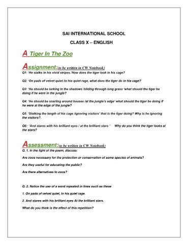 Q6: ‘And stares with his brilliant eyes / at the brilliant stars ‘ Why do you think the tiger looks at