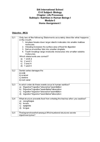 Subtopic- Nutrition in Human Beings I