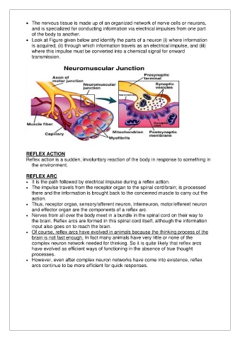 • The nervous tissue is made up of an organized network of nerve cells or neurons,