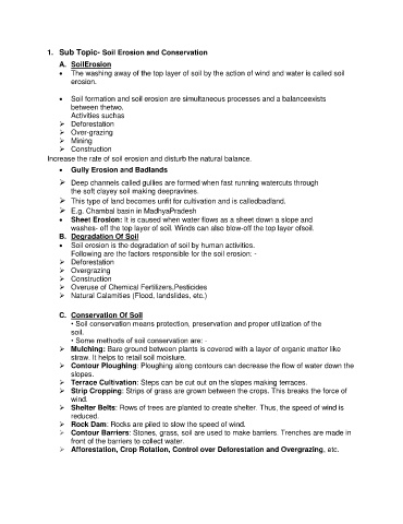 1. Sub Topic- Soil Erosion and Conservation