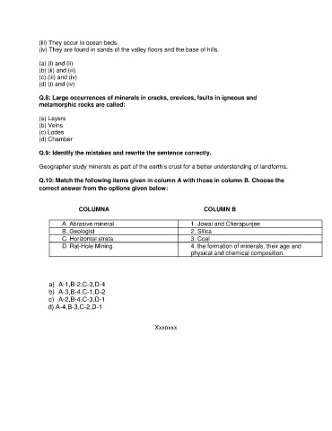 Q.8: Large occurrences of minerals in cracks, crevices, faults in igneous and