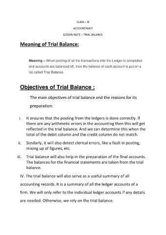 ii. Similarly, it will also detect clerical errors, like a fault in posting,