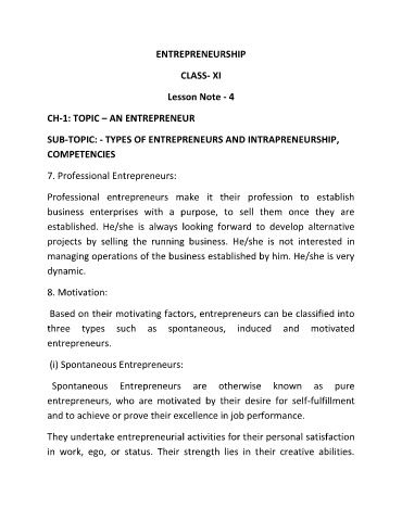 Page 1 - Lesson Note 4 TYPES OF ENTREPRENEURS AND INTRAPRENEURSHIP COMPETENCIES