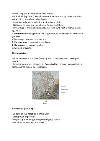 - Unicellular (eg. Yeast) to multicellular filamentous body called mycelium.