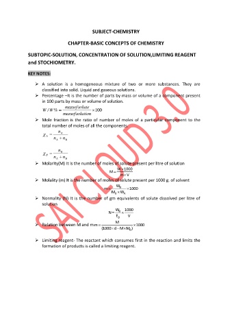 SUBTOPIC-SOLUTION, CONCENTRATION OF SOLUTION,LIMITING REAGENT