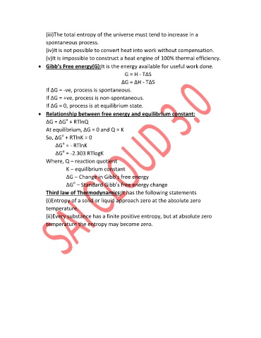 Gibb’s Free energy(G):It is the energy available for useful work done.