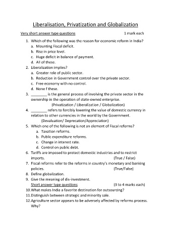Liberalisation, Privatization and Globalization