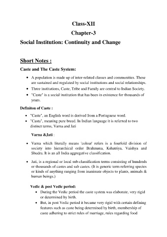Three institutions, Caste, Tribe and Family are central to Indian Society.