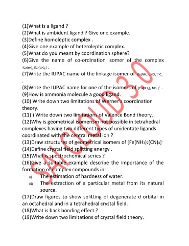 (8)Write the IUPAC name for one of the isomers of [Co(NH ) NO ] .
