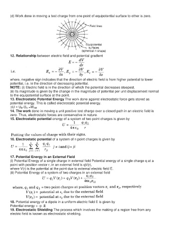 (d) Work done in moving a test charge from one point of equipotential surface to other is zero.