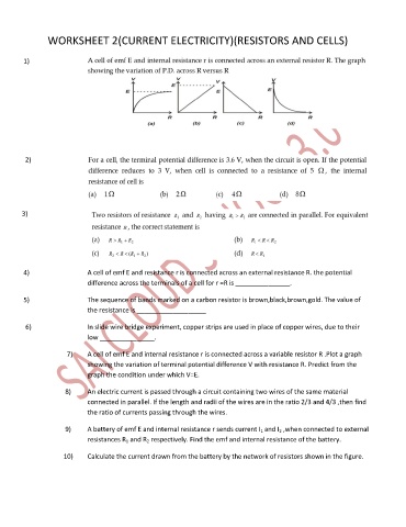 WORKSHEET 2(CURRENT ELECTRICITY)(RESISTORS AND CELLS)