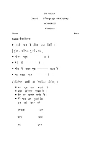 Class -2 2 language -(HINDI) Day :