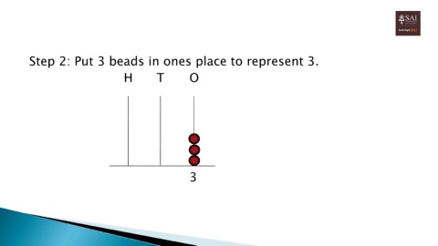 Step 2: Put 3 beads in ones place to represent 3. H T O 3