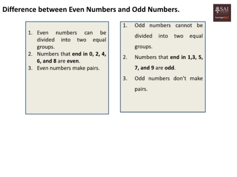 2. Numbers that end in 0, 2, 4, 2. Numbers that end in 1,3, 5,