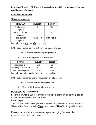 Let'srevise what is Subject pronoun. A Subject pronoun takes the place of