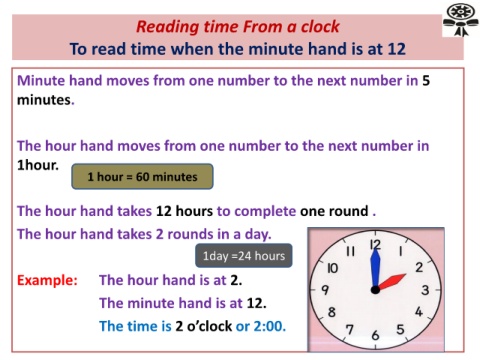 To read time when the minute hand is at 12