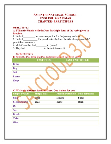 A. Fill in the blanks with the Past Participle form of the verbs given in