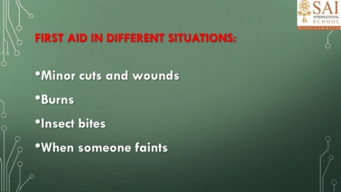 FIRST AID IN DIFFERENT SITUATIONS: •Minor cuts and wounds •Burns •Insect bites •When someone faints