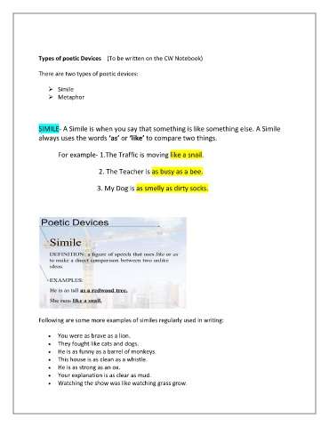 SIMILE- A Simile is when you say that something is like something else. A Simile