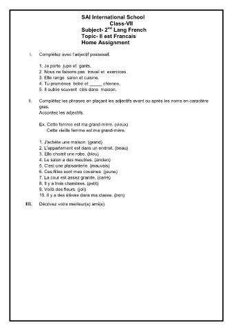 II. Complétez les phrases en plaçant les adjectifs avant ou après les noms en caractère