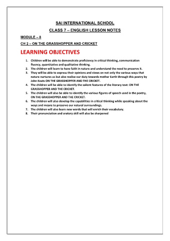 CH 2 – ON THE GRASSHOPPER AND CRICKET