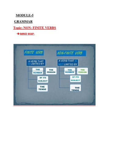 MODULE-5 GRAMMAR Topic: NON- FINITE VERBS MIND MAP: