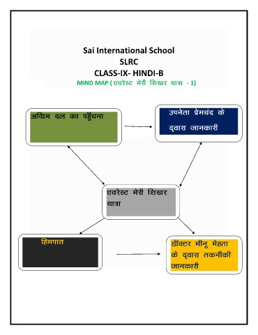 Sai International School SLRC CLASS-IX- HINDI-B MIND MAP ( ,ojsLV esjh f’k[kj ;k=k - 1) miusrk izsepan ds vfxze ny dk igq¡puk n~okjk tkudkjh ,ojsLV esjh f’k[kj ;k=k fgeikr MkWDVj ehuw esgrk ds n~okjk rduhdh tkudkjh