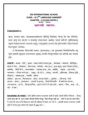 CLASS – IX 2 LANGUAGE SANSKRIT