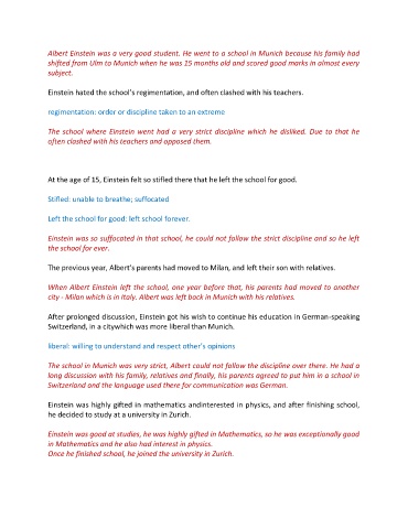 The school in Munich was very strict, Albert could not follow the discipline over there. He had a
