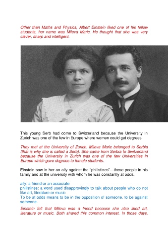 They met at the University of Zurich. Mileva Maric belonged to Serbia