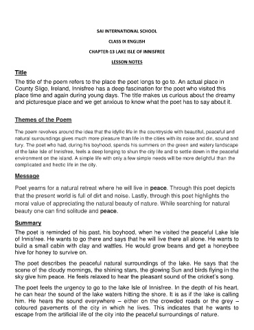 CHAPTER-13 LAKE ISLE OF INNISFREE