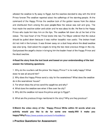 5-Watch the video story of the ‘Happy Prince’.Write within 50 words what one