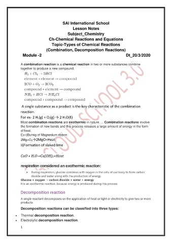 Page 1 - 3. LESSON NOTE-(COMBINATION & DECOMPOSITION REACTION)