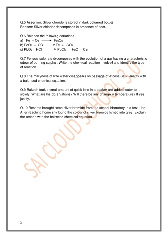 Q.5 Assertion: Silver chloride is stored in dark coloured bottles.