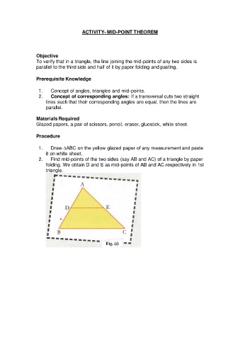 folding. We obtain D and E as mid-points of AB and AC respectively in 1st