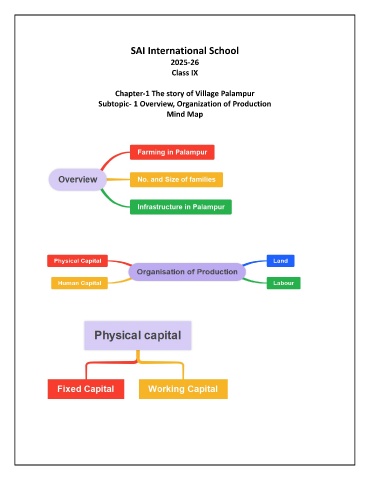 SAI International School 2025-26 Class IX Chapter-1 The story of Village Palampur Subtopic- 1 Overview, Organization of Production Mind Map