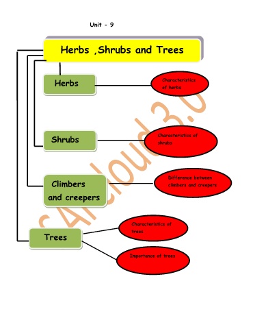 Unit - 9 Herbs ,Shrubs and Trees Herbs Characteristics of herbs Characteristics of Shrubs shrubs Difference between Climbers climbers and creepers and creepers Characteristics of trees Trees Importance of trees