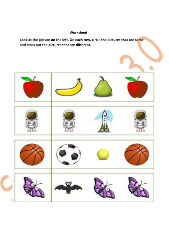 Worksheet Look at the picture on the left. On each row, circle the pictures that are same and cross out the pictures that are different.