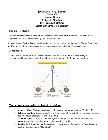 1. Mean position: The rest position of bob is known as mean position. (Position A)